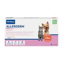 Allerderm Spot-on ist eine einzigartige Emulsion, die speziell für Hunde und Katzen mit Imbalanzen der Hautbarriere (was zu trockener oder empfindlicher Haut führt) entwickelt wurde:
